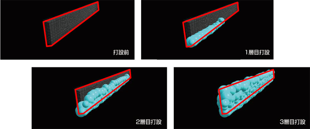 大林組等は、生コン車荷下ろし時のコンクリートの画像から、AI技術の深層学習機能により、コンクリート全量のスランプを管理する(図-3のような)システムを開発している5)。人の操作は不要で、全て自動で、スランプの異常が検出されると、打設や品質管理担当者に警告を発する。その他にレイタンス処理をAIで評価する手法も開発中である6)。