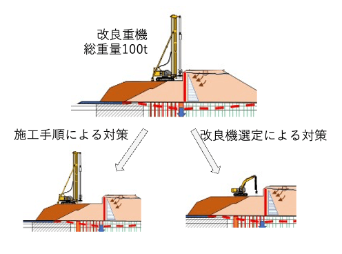 実態評価の結果、二期工事による先行対策への影響が懸念される場合には、盛土の緩速施工を採用し、